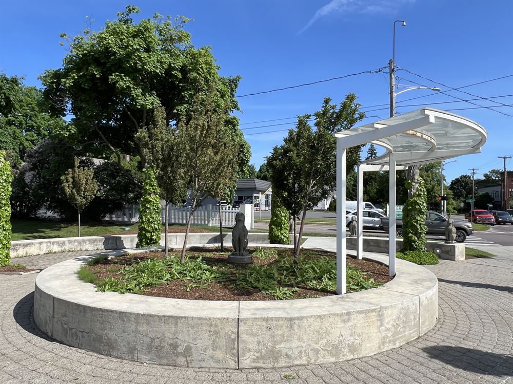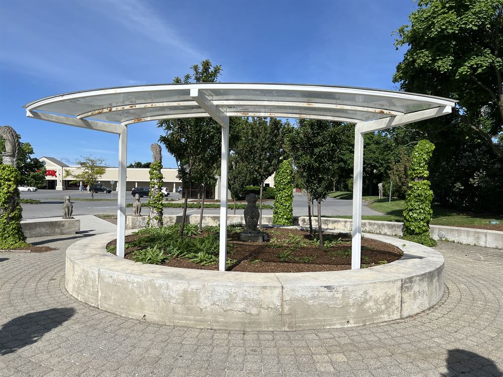When Ernie Pomerleau, the President of Pomerleau Real Estate, approached Burlington City Arts, he had an artistic vision in mind for the redevelopment site of a shopping mall. His request was to incorporate a sculptural element, and the result was a remarkable sculpture garden that serves multiple purposes. Acting as a bus stop, a pedestrian gateway to the mall, and a vehicular entrance to Burlington, this garden has become an iconic landmark along Shelburne Road.