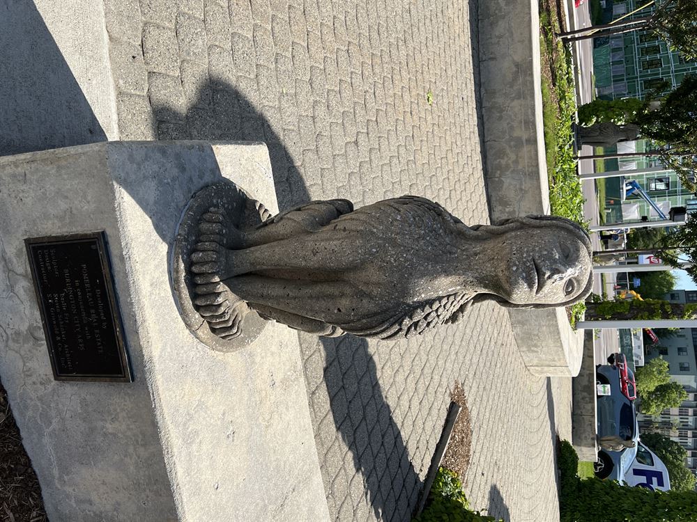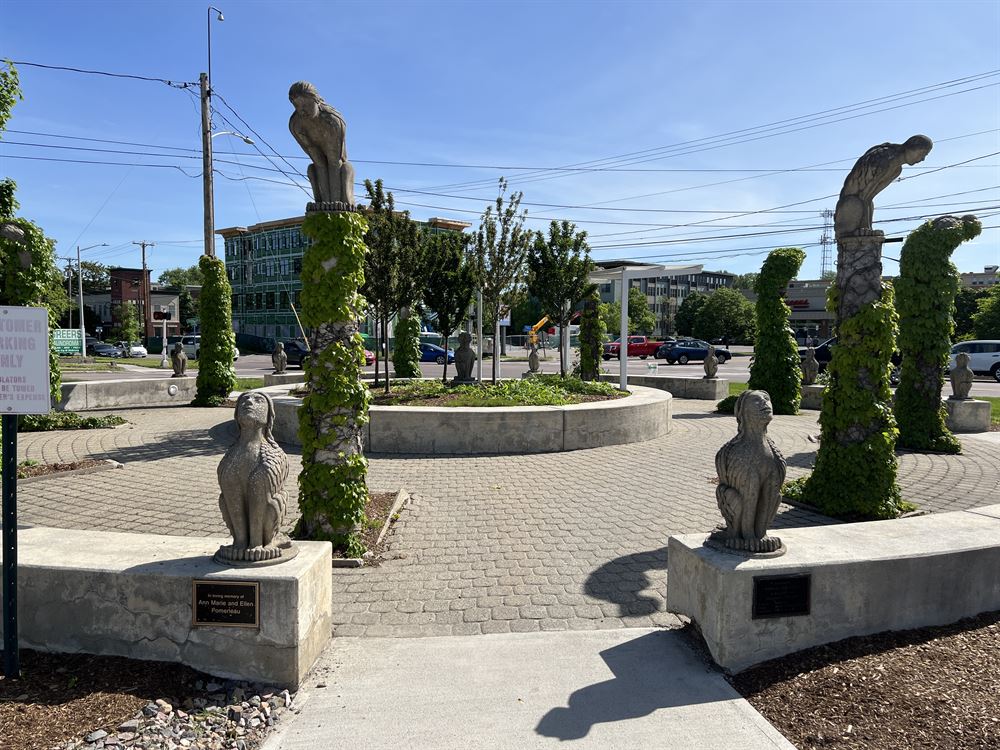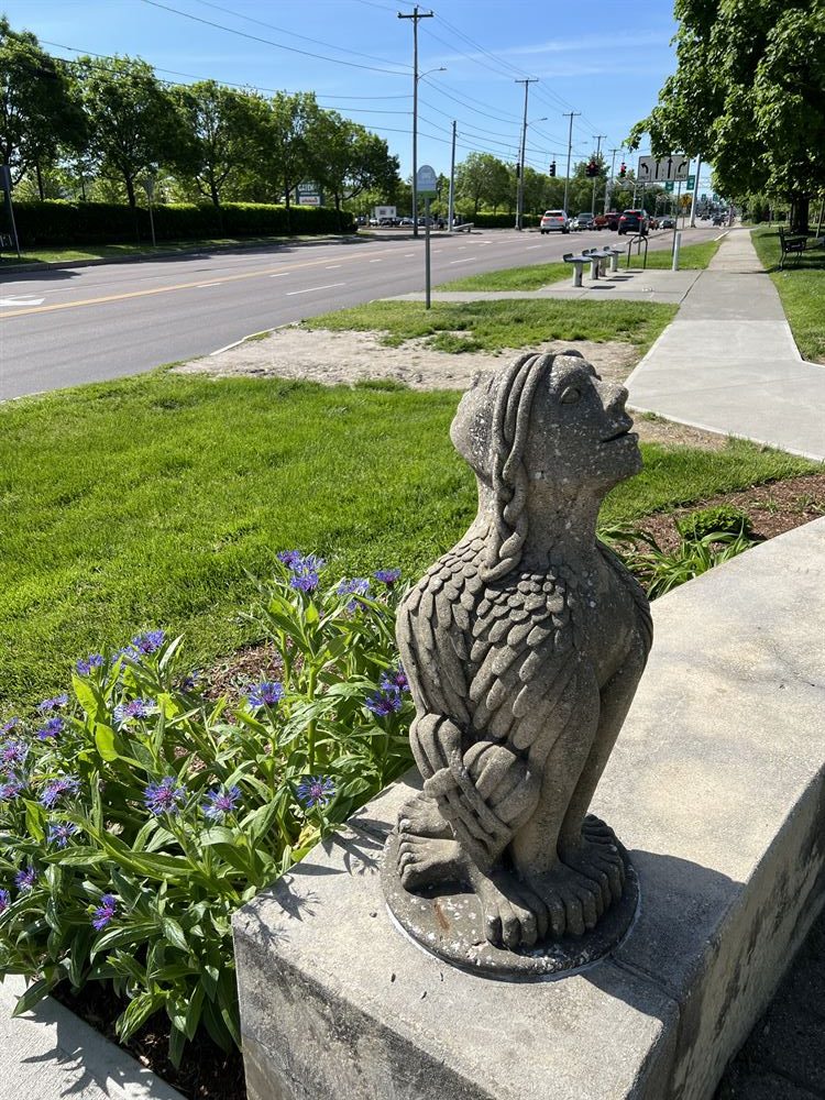 The “pocket park,” as it's affectionately called, features striking concrete sphinxes perched atop columns, adding an air of mystery and intrigue to the space. The originality of the artwork and the seamless integration of the park design have garnered widespread praise, making it a beloved attraction for locals and visitors alike.
